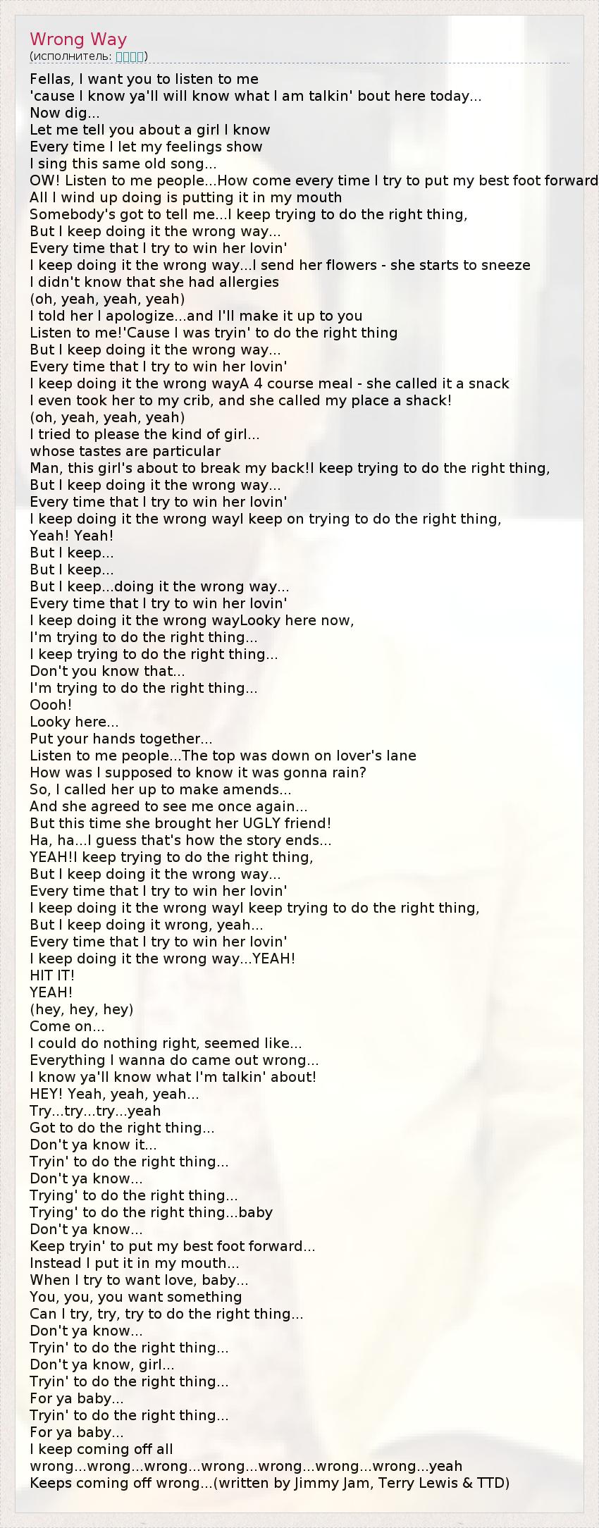 А как ты думаешь, о чем песня "Wrong Way" ?