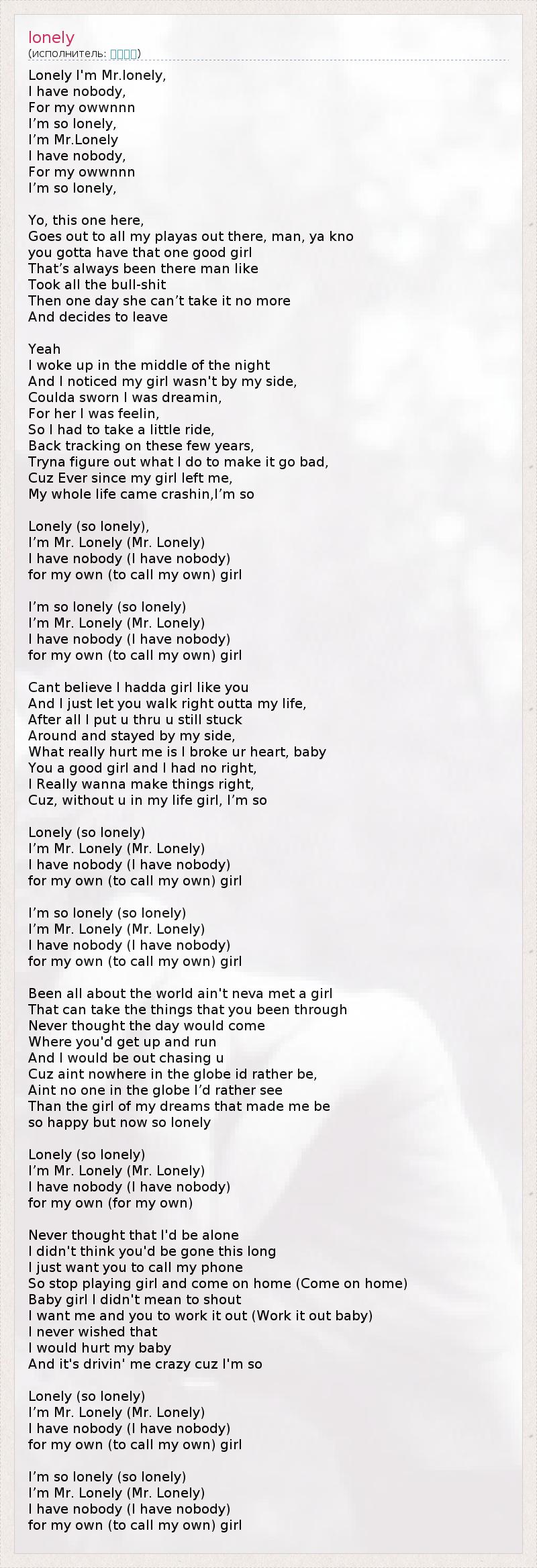 Lonely I'm Mr.lonely,