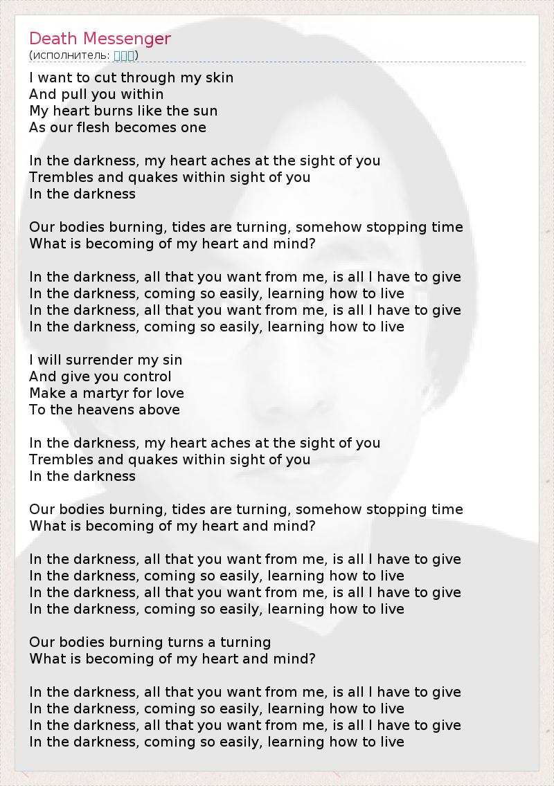 А как ты думаешь, о чем песня "Death Messenger" ?