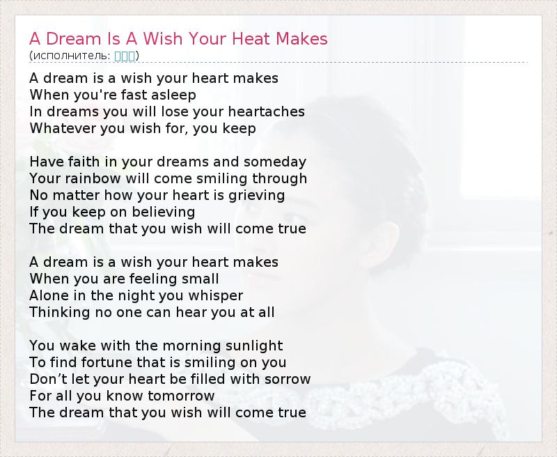 А как ты думаешь, о чем песня "A Dream Is A Wish Your Heat Makes" ?