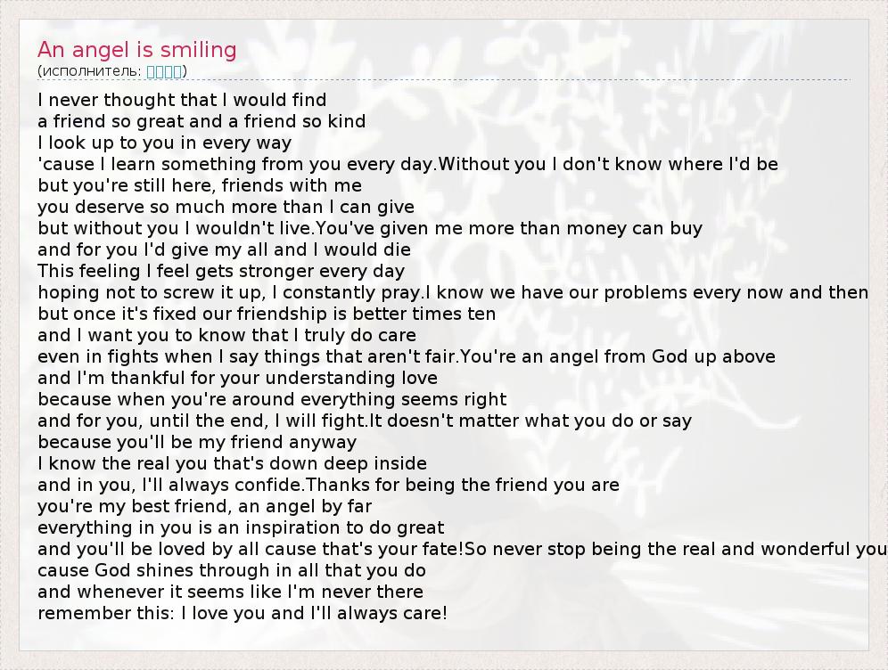 А как ты думаешь, о чем песня "An angel is smiling" ?