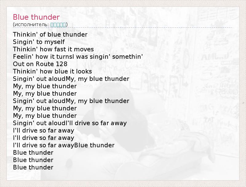 А как ты думаешь, о чем песня "Blue thunder" ?