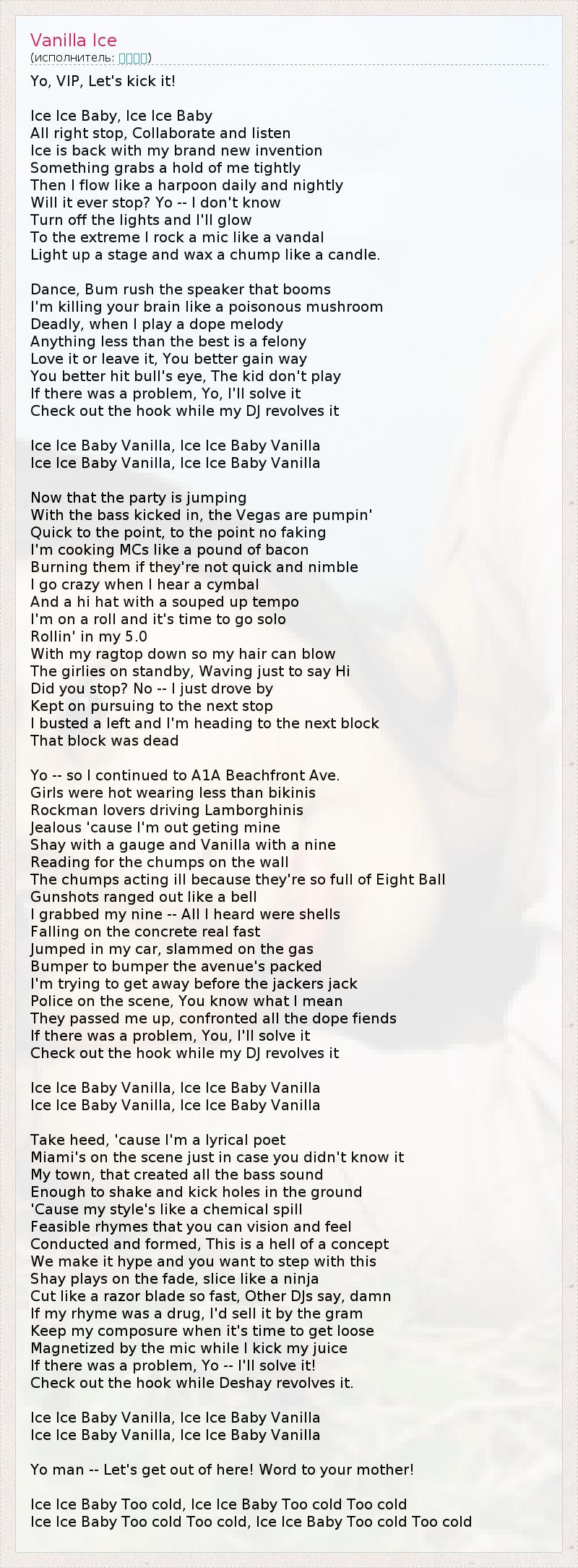 А как ты думаешь, о чем песня "Vanilla Ice" ?