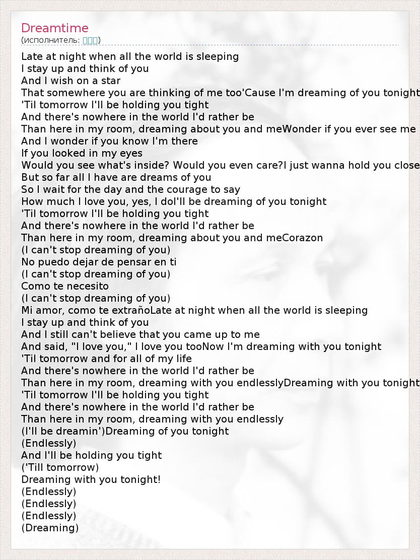 That somewhere you are thinking of me too'Cause I'm dreaming of you tonight