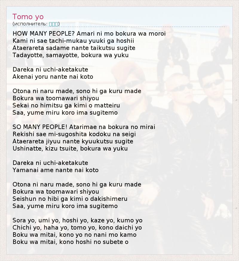 А как ты думаешь, о чем песня "Tomo yo" ?