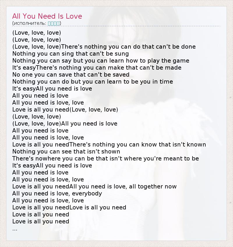 А как ты думаешь, о чем песня "All You Need Is Love" ?