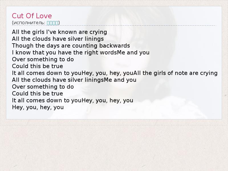 А как ты думаешь, о чем песня "Cut Of Love" ?
