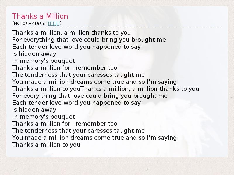 А как ты думаешь, о чем песня "Thanks a Million" ?
