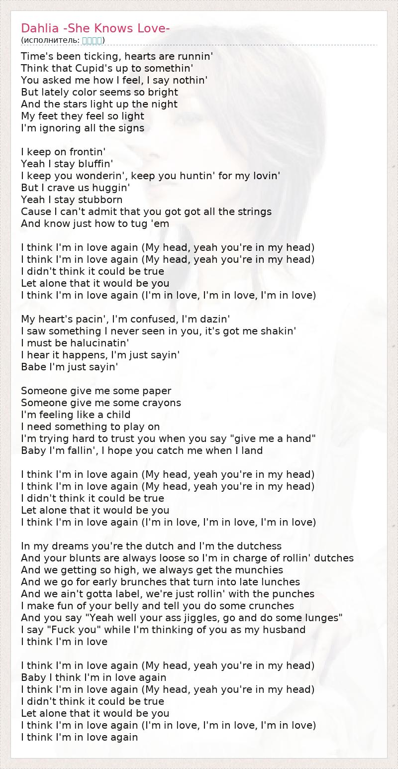 А как ты думаешь, о чем песня "Dahlia -She Knows Love-" ?
