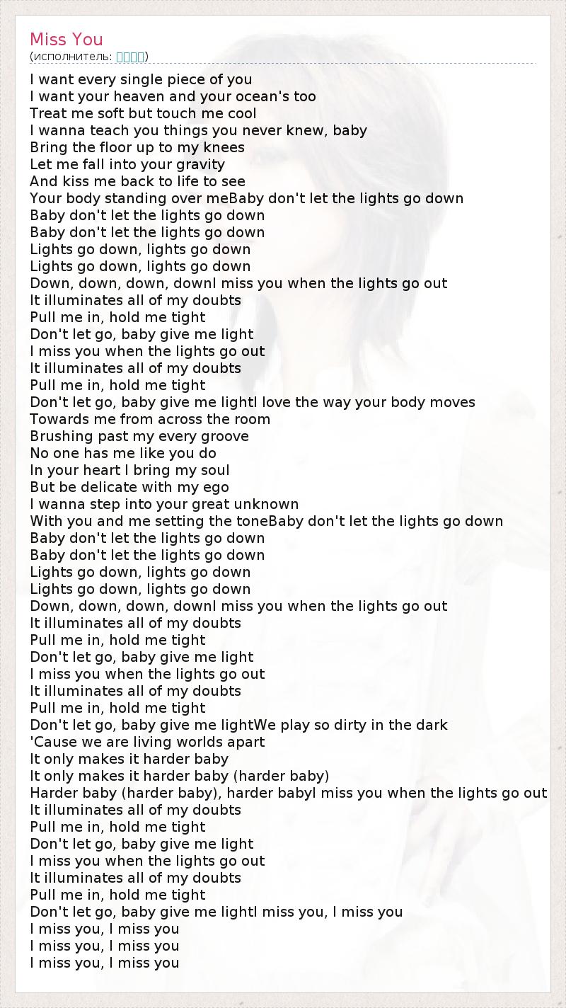 Don't let go, baby give me lightI miss you, I miss you
