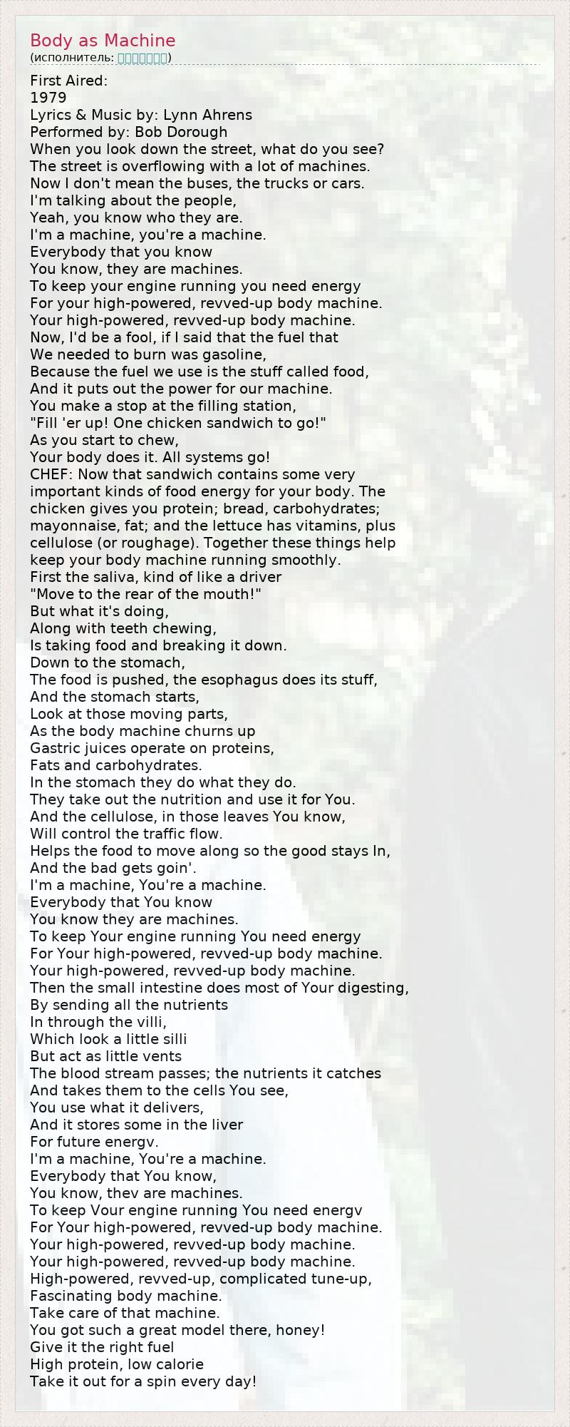 А как ты думаешь, о чем песня "Body as Machine" ?