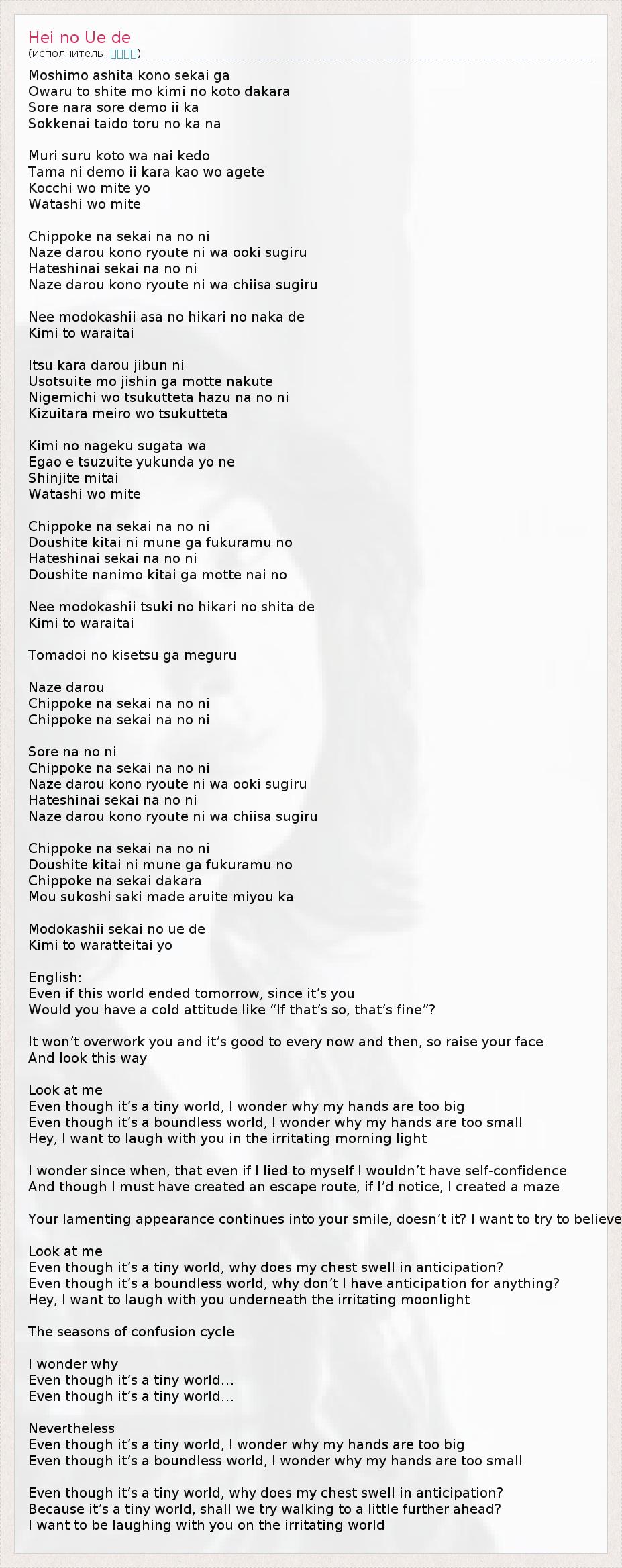 А как ты думаешь, о чем песня "Hei no Ue de" ?