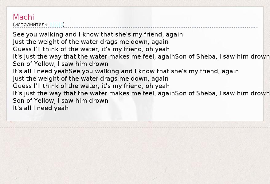 It's all I need yeahSee you walking and I know that she's my friend, again