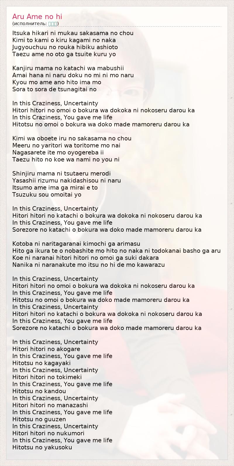 А как ты думаешь, о чем песня "Aru Ame no hi" ?