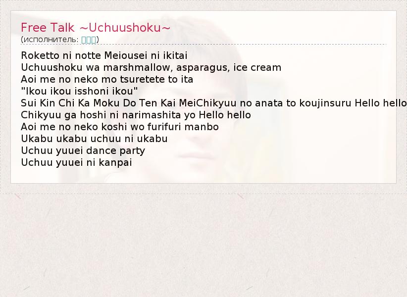 А как ты думаешь, о чем песня "Free Talk ~Uchuushoku~" ?