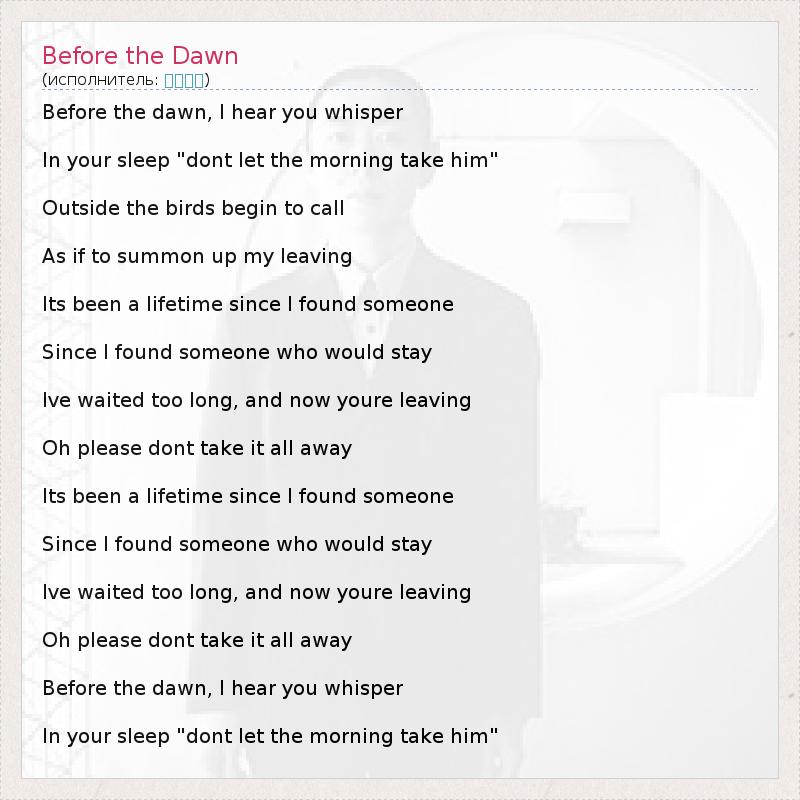 Before the dawn, I hear you whisper
