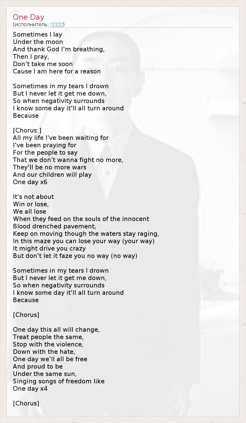 А как ты думаешь, о чем песня "One Day" ?