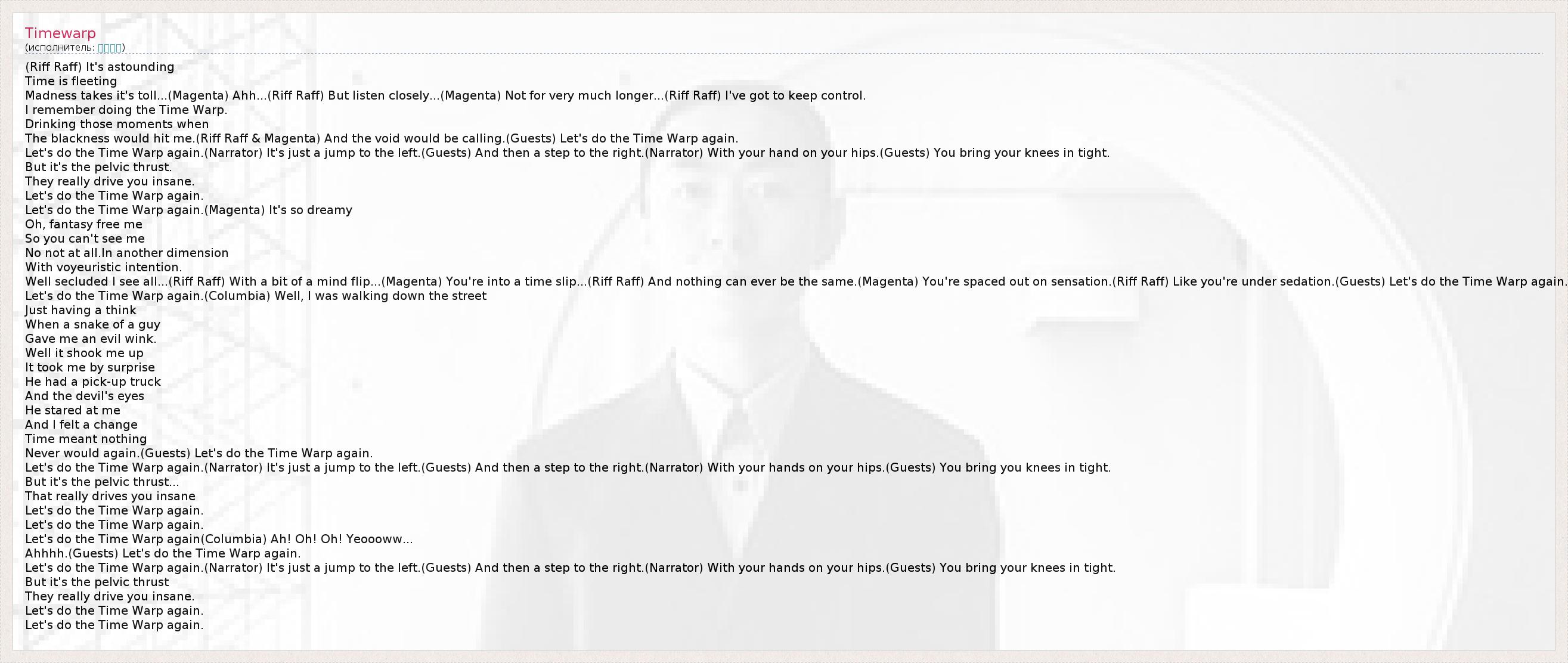 Let's do the Time Warp again(Columbia) Ah! Oh! Oh! Yeoooww...
