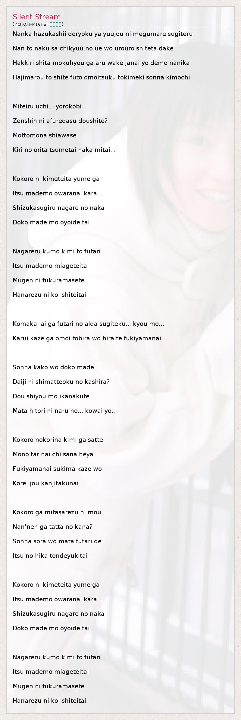 А как ты думаешь, о чем песня "Silent Stream" ?