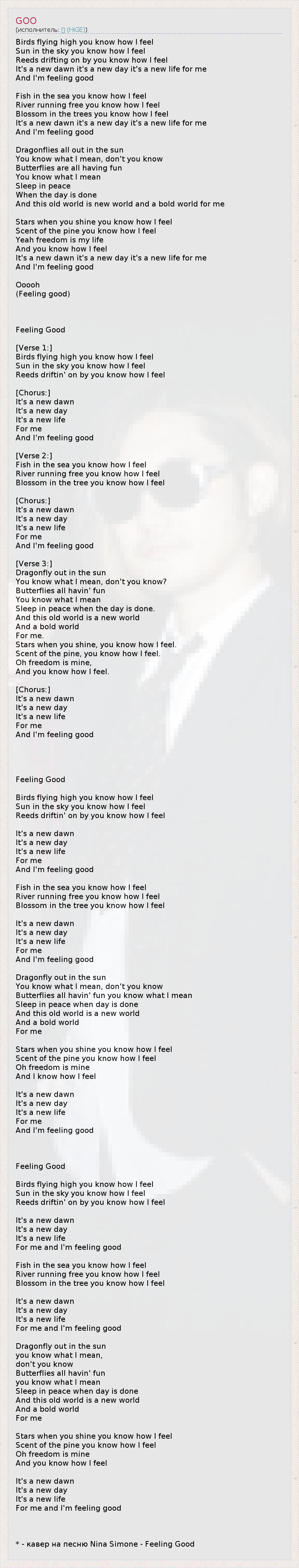 Чувствую себя хорошо (перевод Кати Чикиндиной из Могилева)