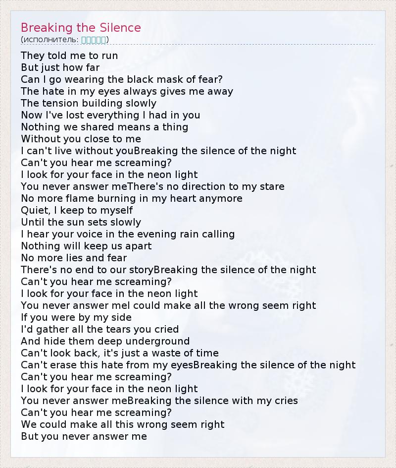 А как ты думаешь, о чем песня "Breaking the Silence" ?