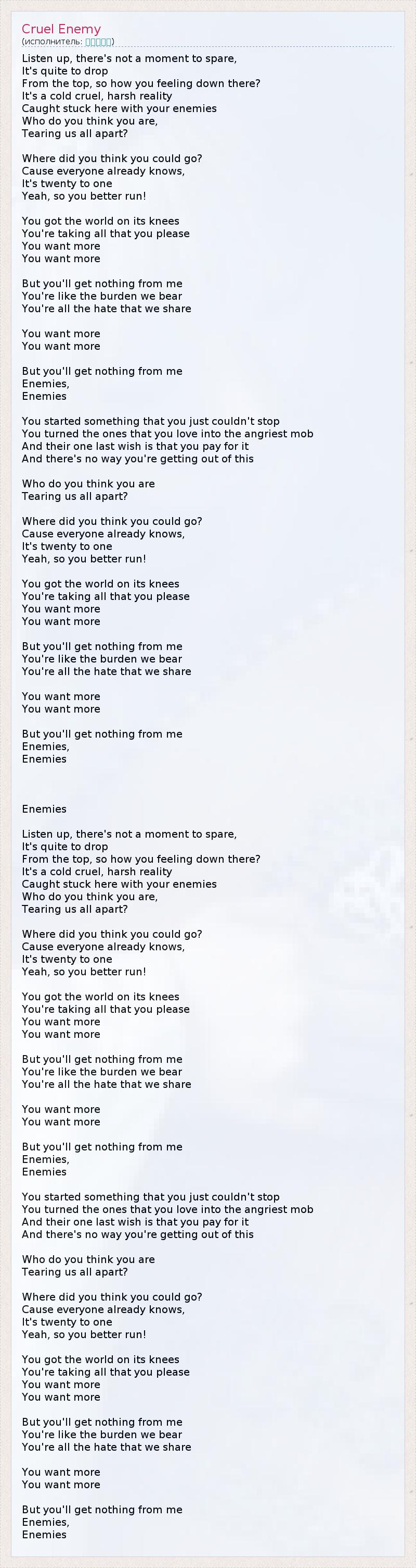 А как ты думаешь, о чем песня "Cruel Enemy" ?