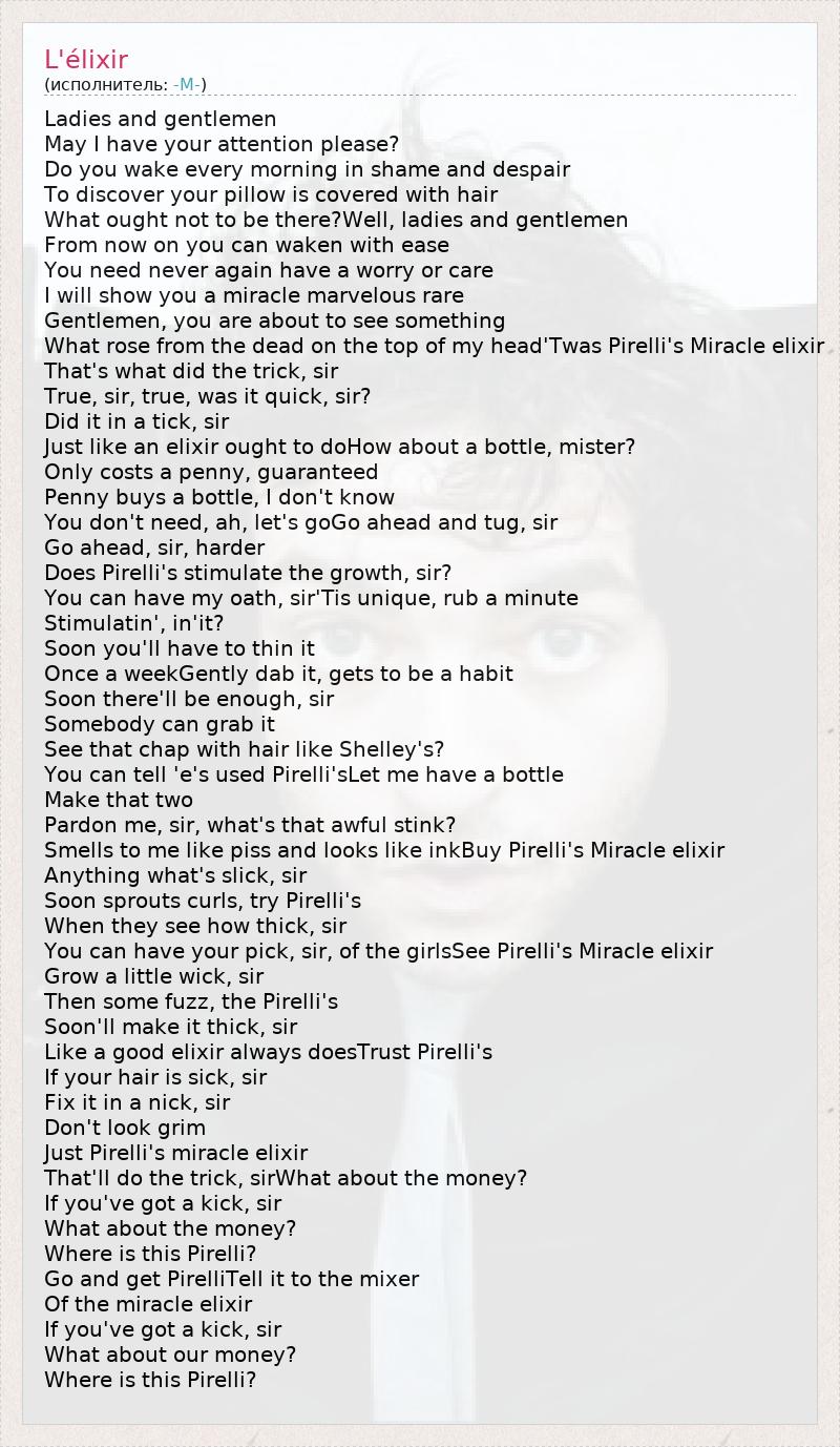 А как ты думаешь, о чем песня "L'élixir" ?