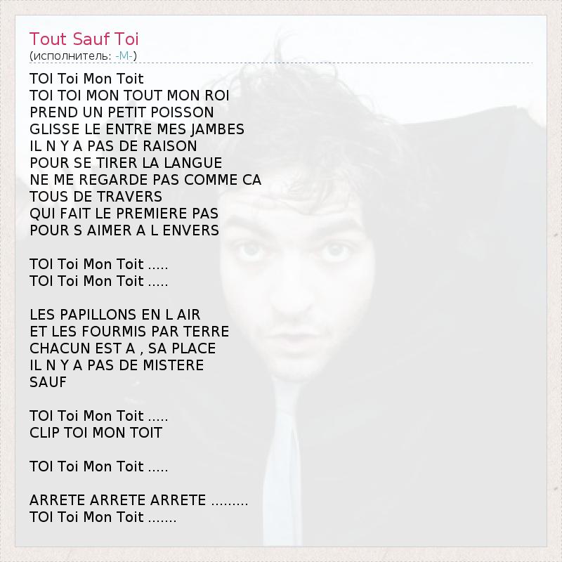 А как ты думаешь, о чем песня "Tout Sauf Toi" ?