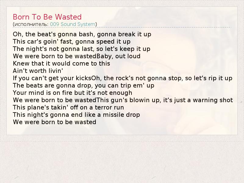 А как ты думаешь, о чем песня "Born To Be Wasted" ?