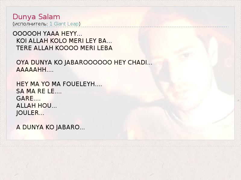 А как ты думаешь, о чем песня "Dunya Salam" ?