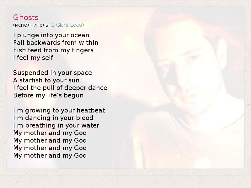 I plunge into your ocean Fall backwards from within Fish feed from my fingers I feel my self Suspended in your space A starfish to your sun I feel the pull of deeper dance Before my life's begun I'm growing to your heatbeat I'm dancing in your blood I'm breathing in your water My mother and my God My mother and my God My mother and my God My mother and my God