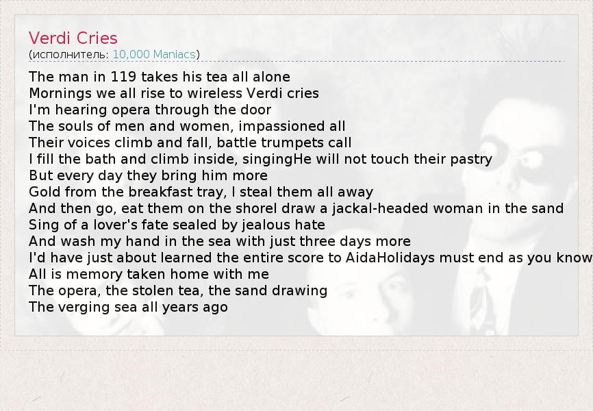 А как ты думаешь, о чем песня "Verdi Cries" ?