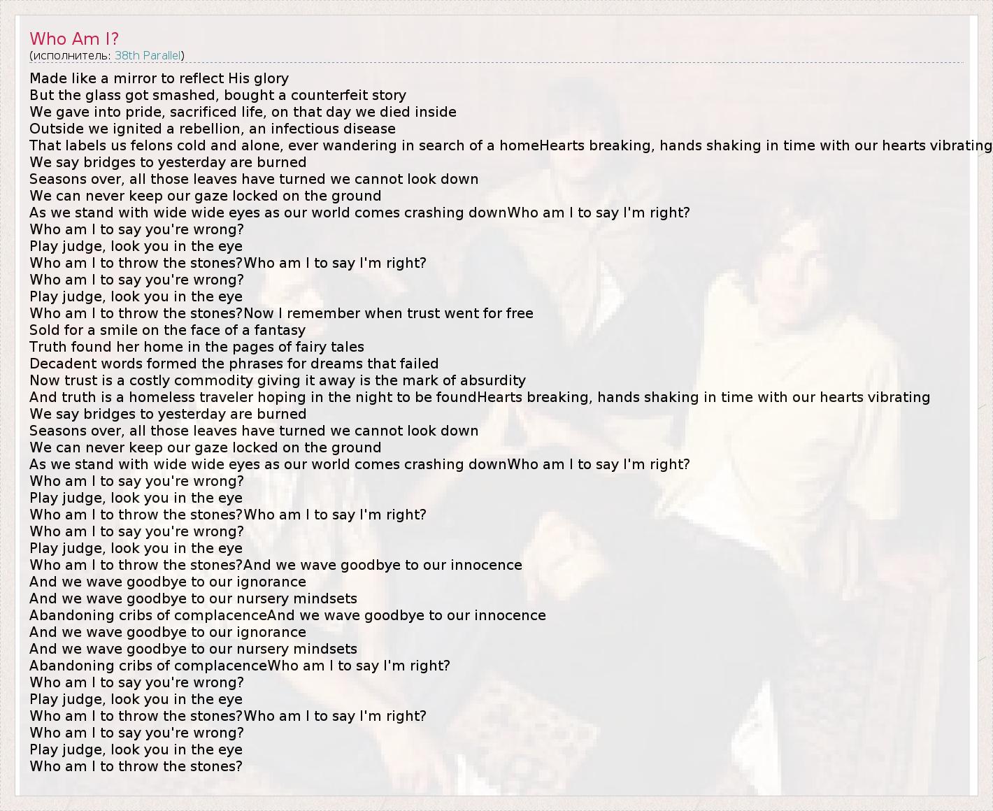 А как ты думаешь, о чем песня "Who Am I?" ?