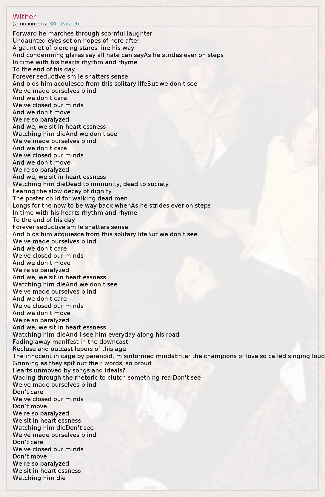 Это интересно:38 Parallel (скорее всего их город находится на этой самой 38-ой параллели. Вычислить его оказалось тяжеловато: в одном штате их тринадцать, в другом - шестнадцать) - молодая группа, образовавшаяся 11 июня 2002 года и 27 июля она уже направо и налево швыряется своим альбомом "Turn The Tides" (ежели по-русски, то название альбома можно перевести как "Поворачивая волны"). Состав группы стандартный:... продолжение