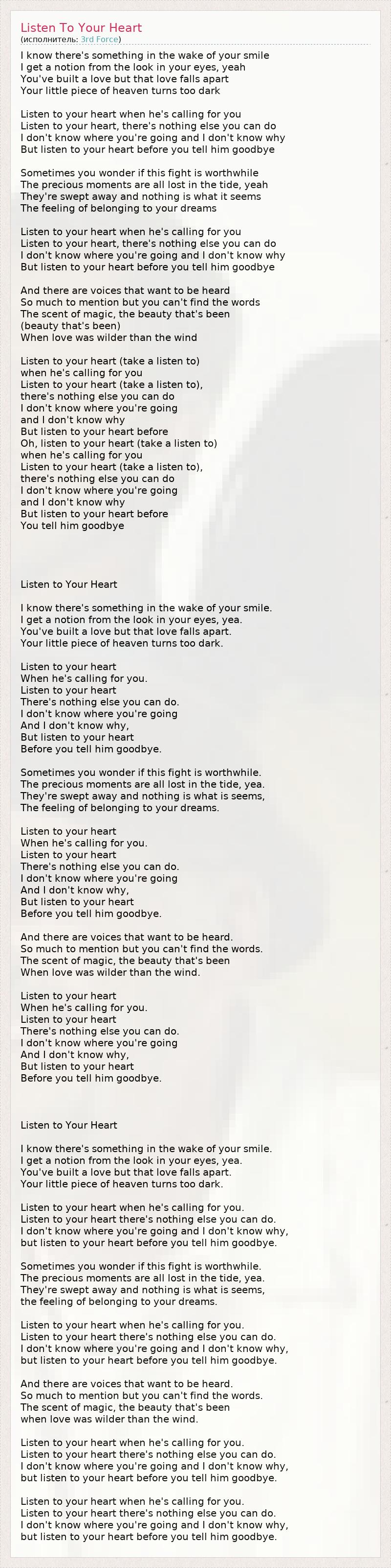 А как ты думаешь, о чем песня "Listen To Your Heart" ?