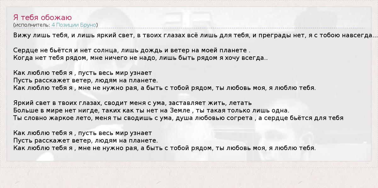 Как люблю тебя я , мне не нужно рая, а быть с тобой рядом, ты любовь моя, я люблю тебя.