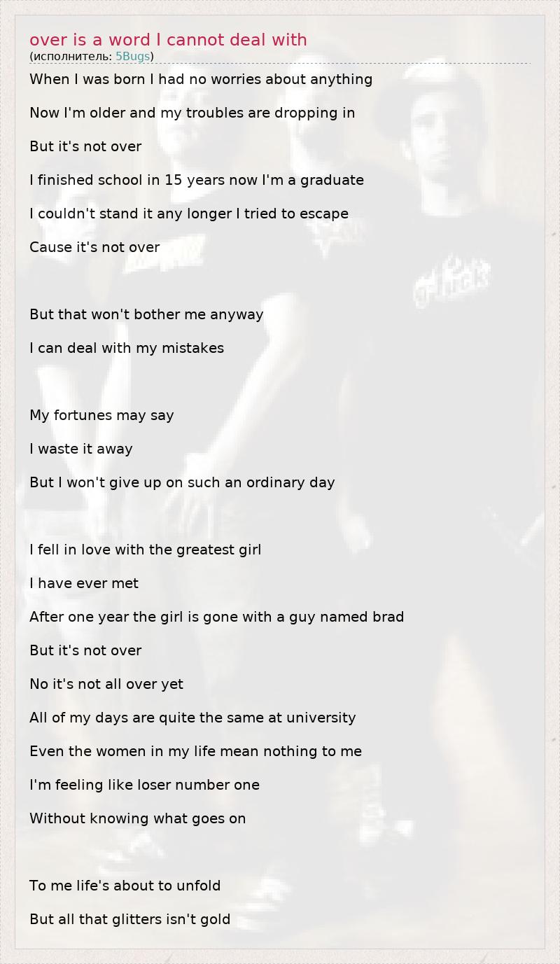 А как ты думаешь, о чем песня "over is a word I cannot deal with" ?