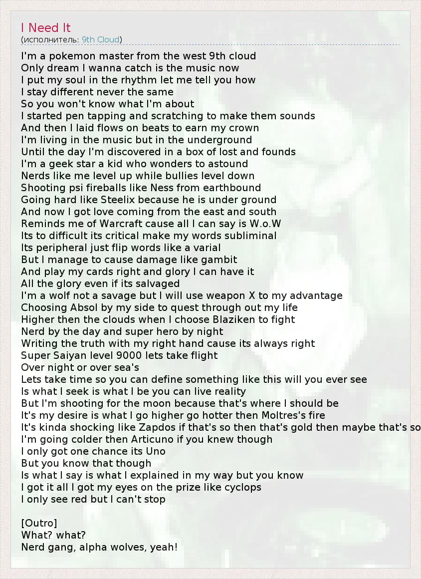 А как ты думаешь, о чем песня "I Need It" ?