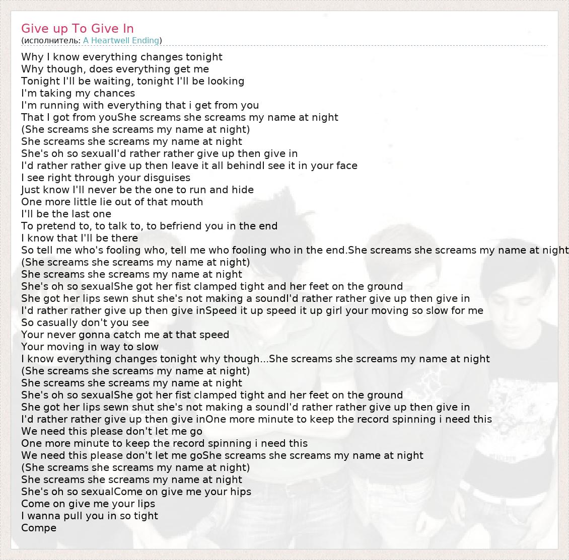А как ты думаешь, о чем песня "Give up To Give In" ?