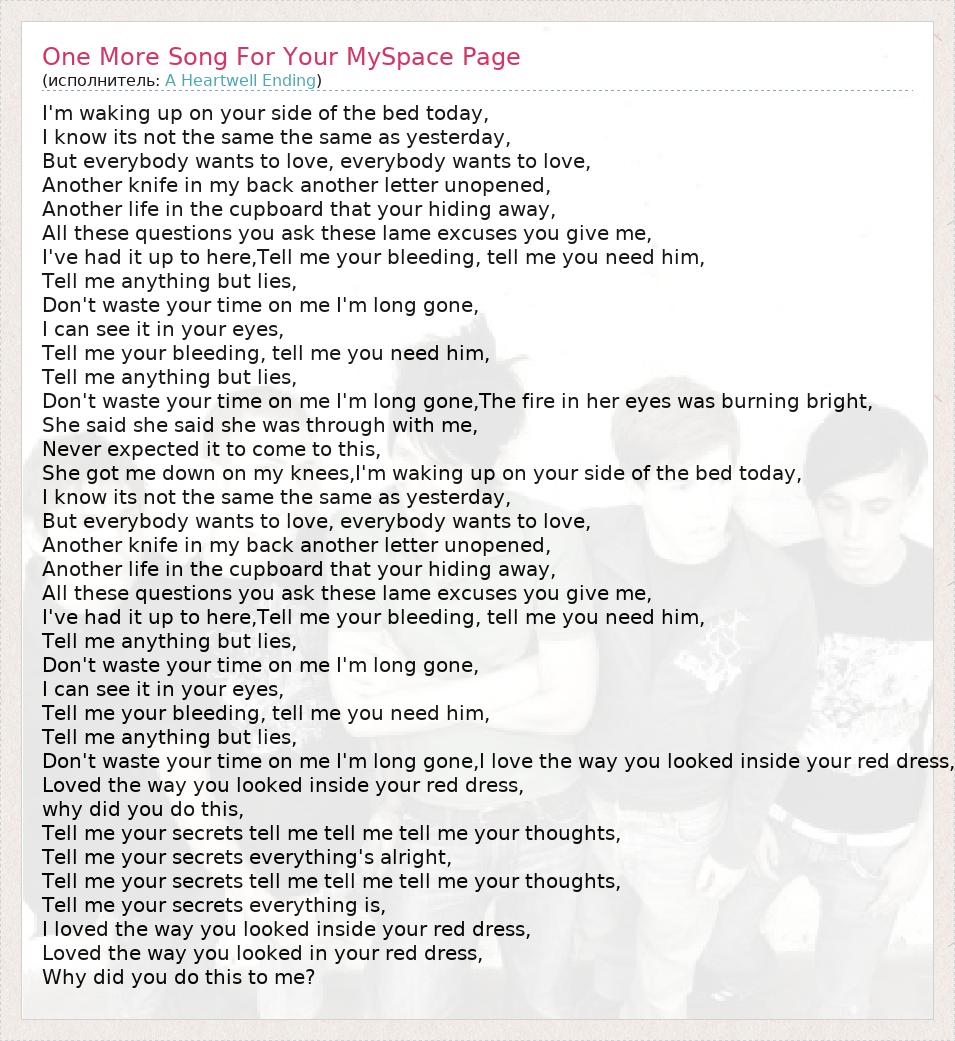 А как ты думаешь, о чем песня "One More Song For Your MySpace Page" ?