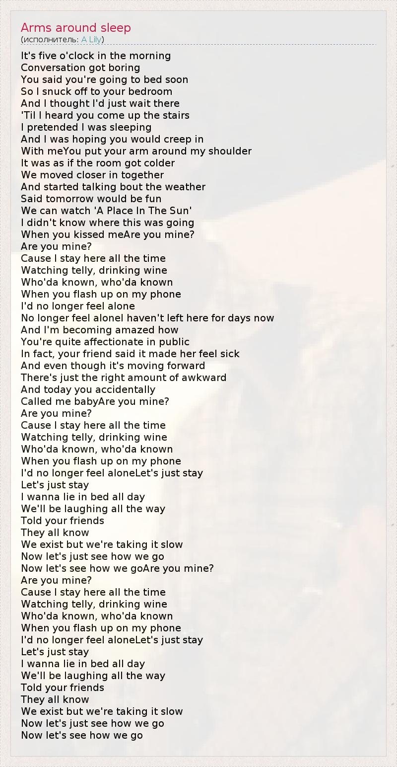 А как ты думаешь, о чем песня "Arms around sleep" ?