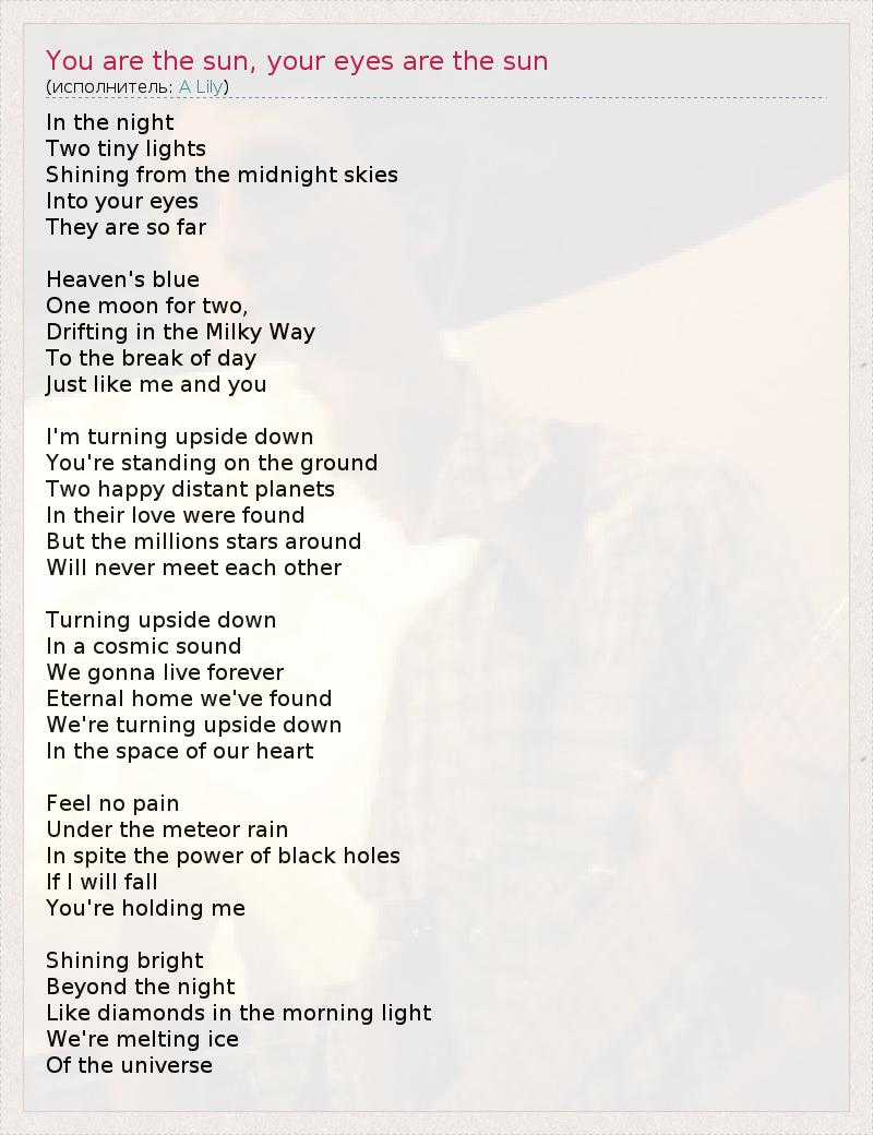 А как ты думаешь, о чем песня "You are the sun, your eyes are the sun" ?
