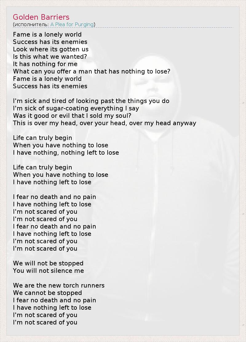 I have nothing, nothing left to lose
