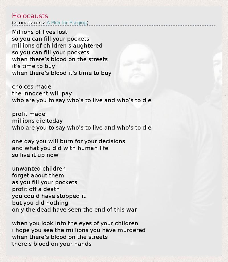Это интересно:ВидеовыпускA Plea for Purging - металкор группа из Мерфрисборо, штат Теннеси, США. На свет появилась в 2005-м году, и сразу положительно зарекомендовала себе на местной сцене. Банда состоит из четверых ребят, которые играют техничный металкор и мелодик хардкор. Парни недавно подписали контракт с Facedown Records и... продолжение