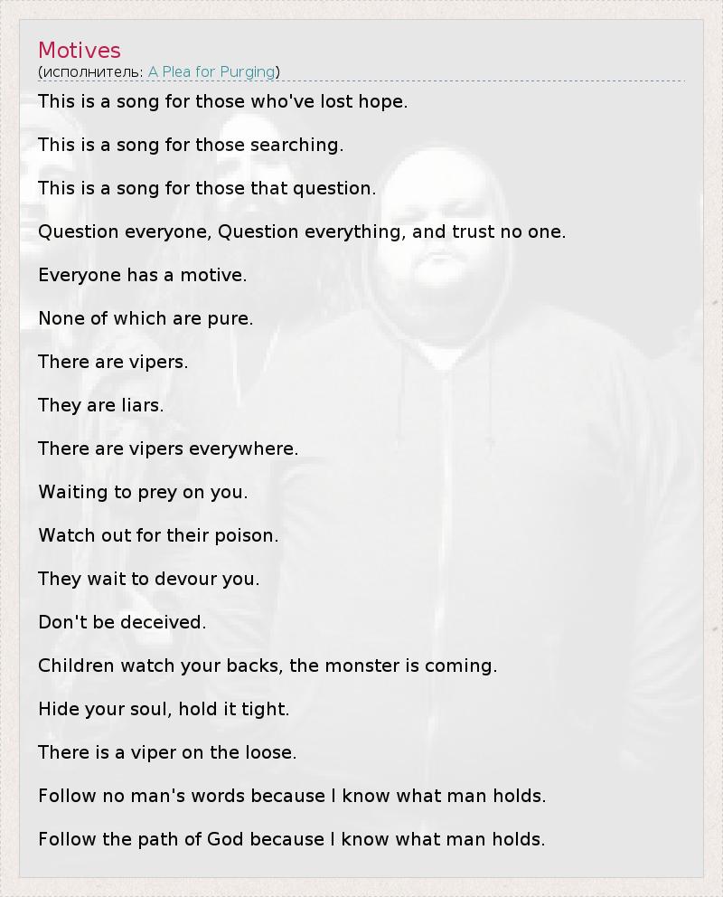 А как ты думаешь, о чем песня "Motives" ?