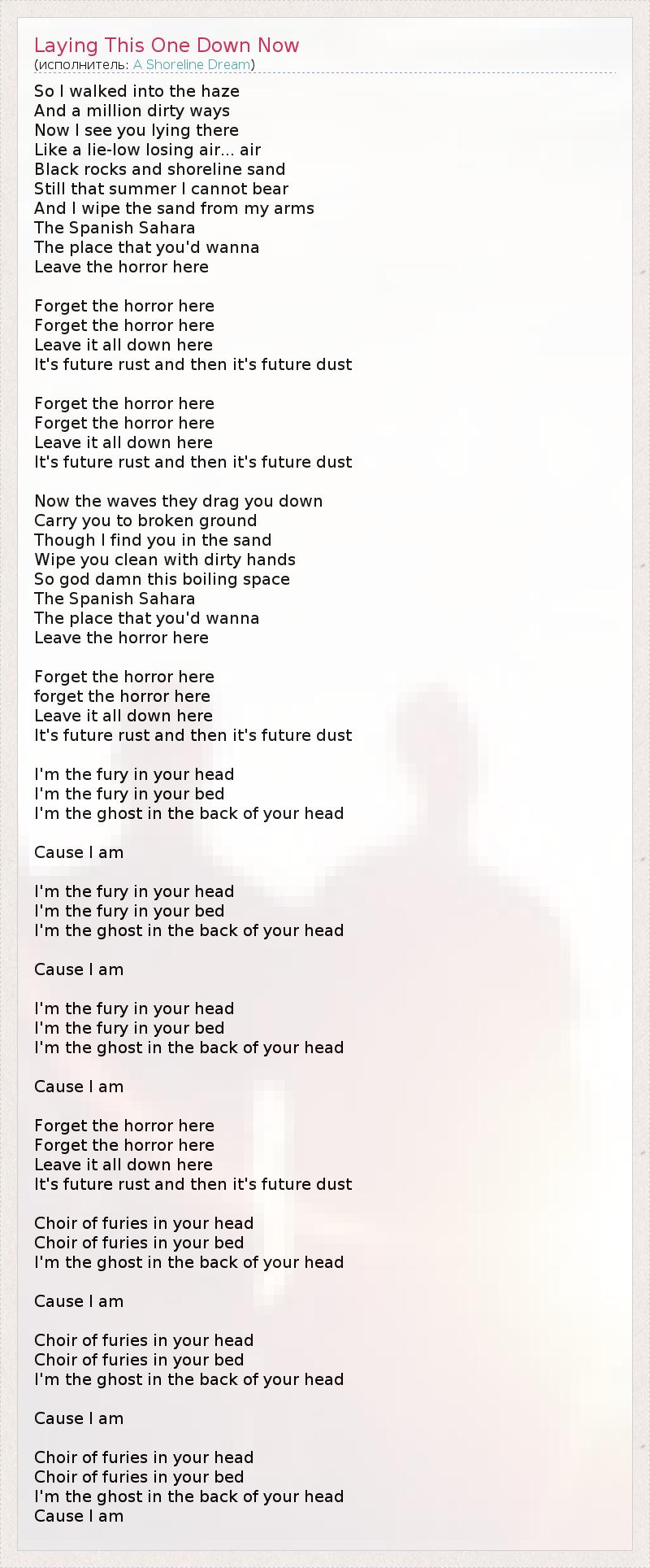 А как ты думаешь, о чем песня "Laying This One Down Now" ?