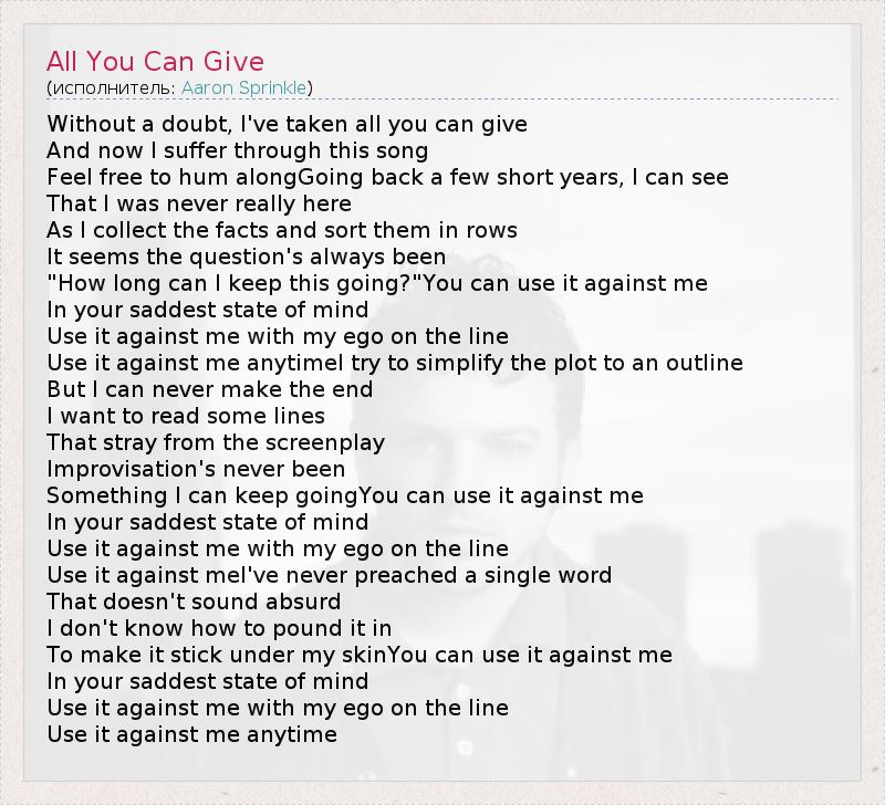А как ты думаешь, о чем песня "All You Can Give" ?
