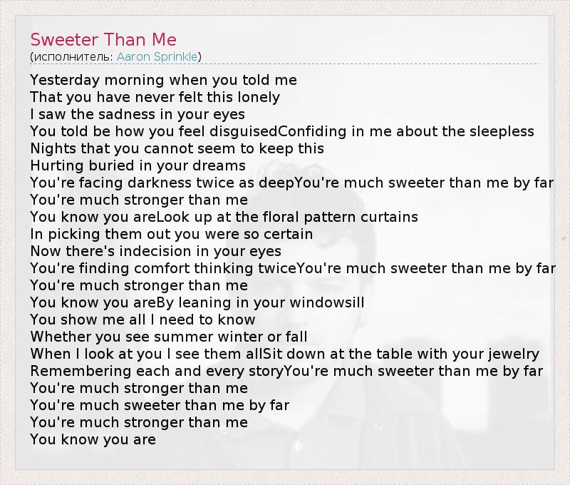 А как ты думаешь, о чем песня "Sweeter Than Me" ?
