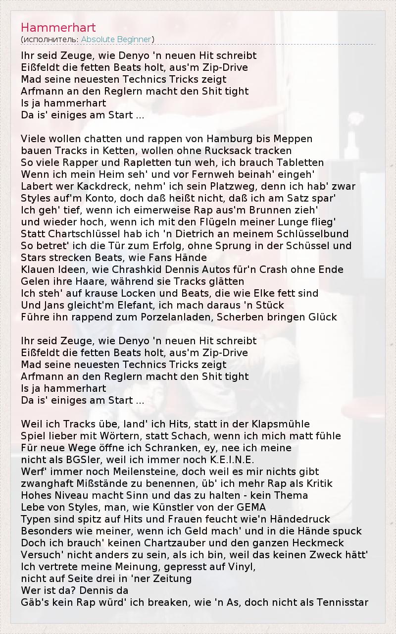 А как ты думаешь, о чем песня "Hammerhart" ?