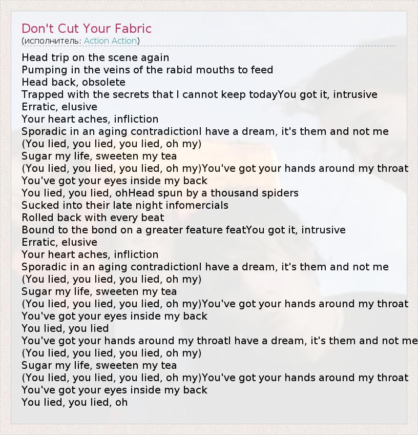 А как ты думаешь, о чем песня "Don't Cut Your Fabric" ?